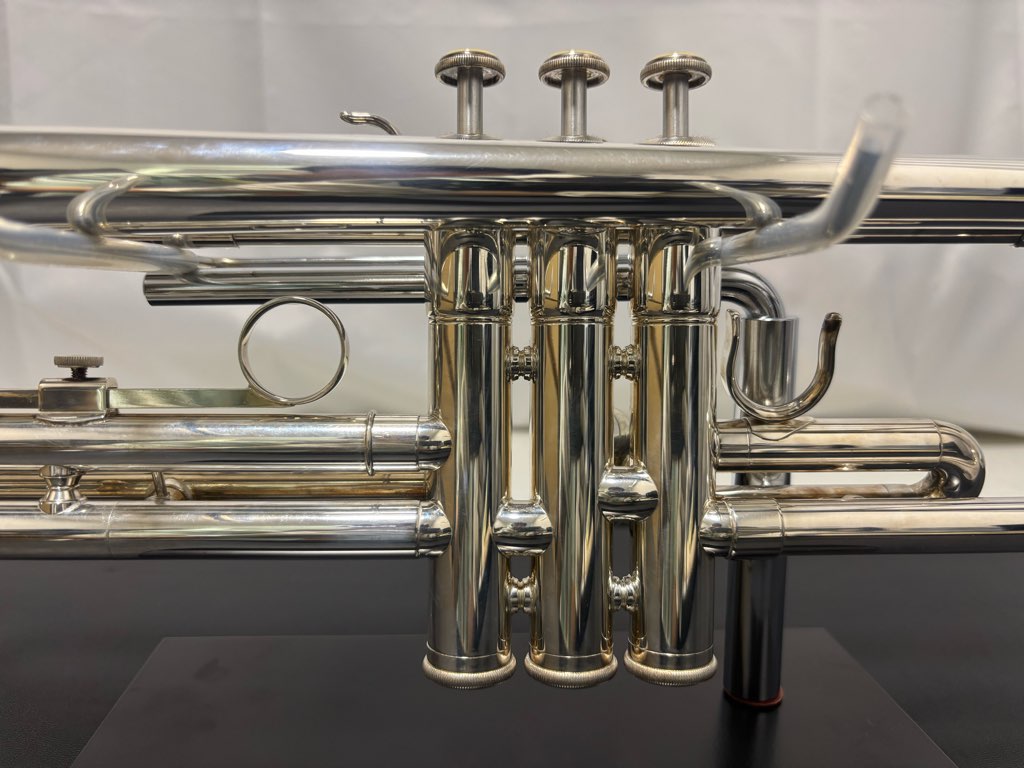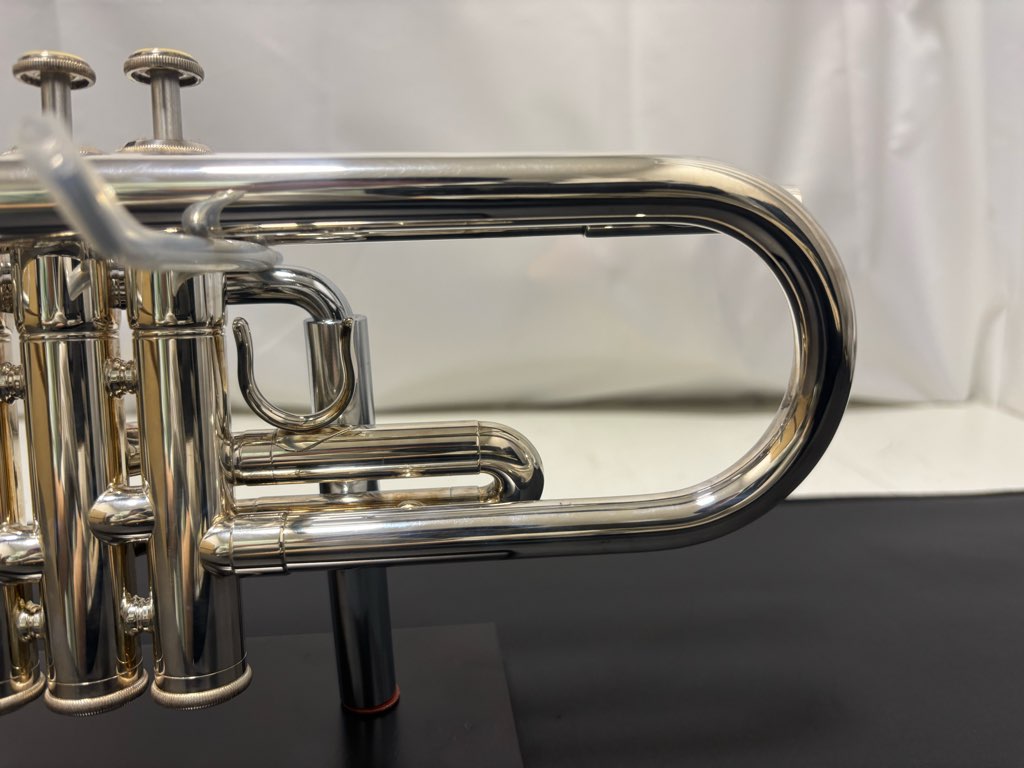 支柱がないことにより抵抗感が少なく息を吹き込みやすい楽器ですが、オーソドックスな銀メッキ仕上げによるトランペットらしい響きのある音色で、初心者の方にも吹きやすくまとまっている楽器です。