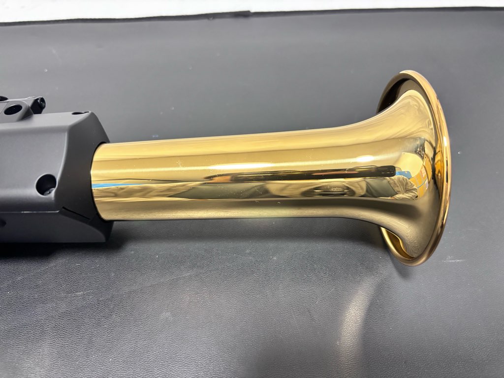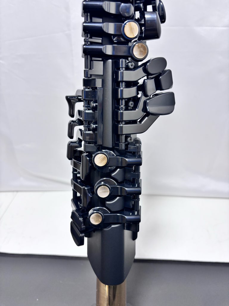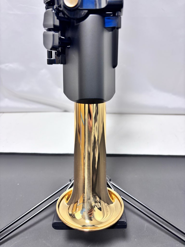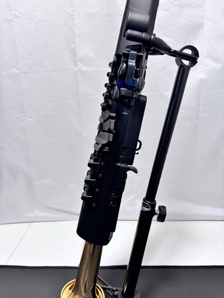 スピーカーユニット、エンクロージャー、音響管、イエローブラス製ベルで構成されるこのシステムは、マウスピースから吹き込んだ息をブレスセンサーが検出、デジタル音源システムがスピーカーを駆動し、音と振動がイエローブラス製ベルにまで伝わることで、デジタルでありながらアコースティックサクソフォンを演奏しているような吹奏感、楽器との一体感を得ながら音楽を奏でることができます。